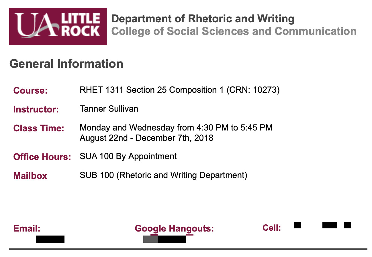 A reflection over teaching Composition 1 at UALR in the Fall of 2018.