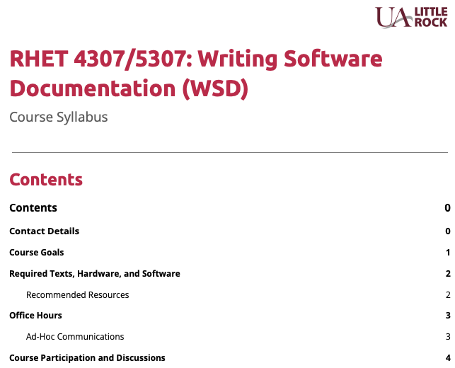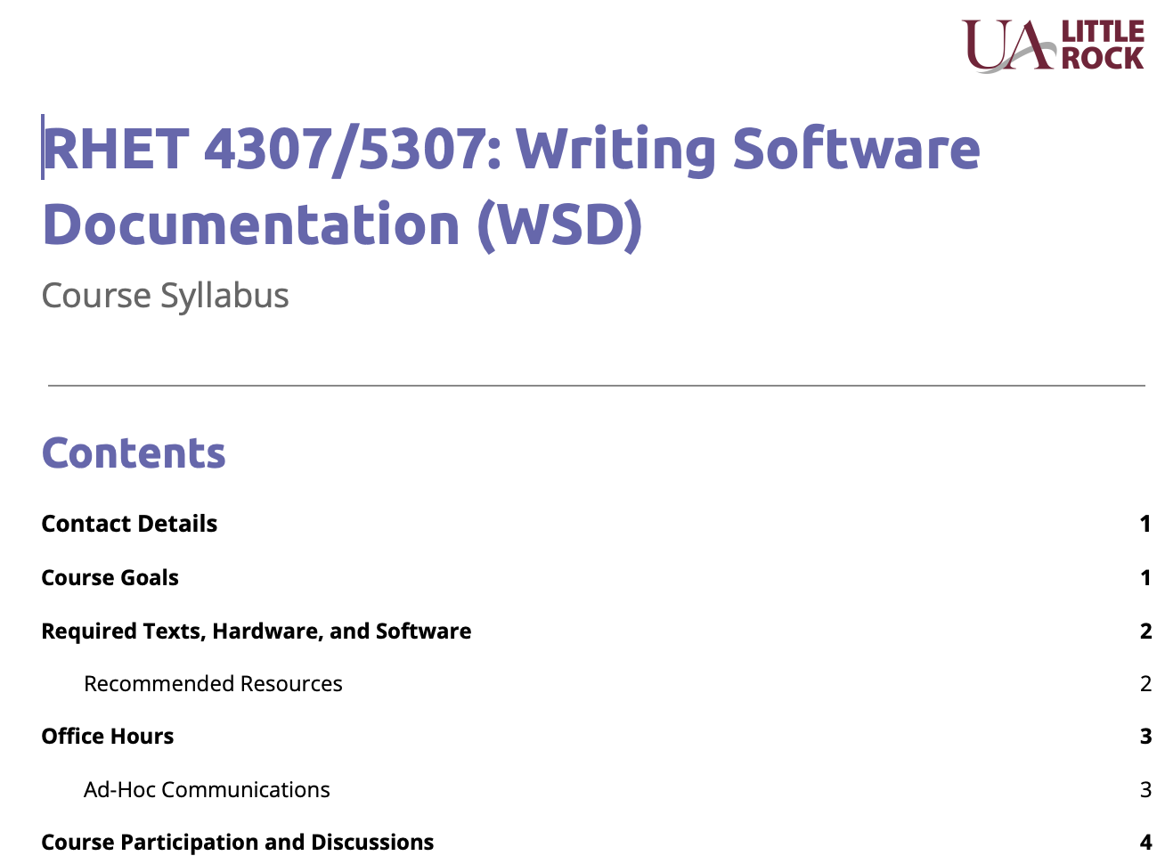 A reflection over teaching Writing Software Documentation at UALR in the Spring of 2023.